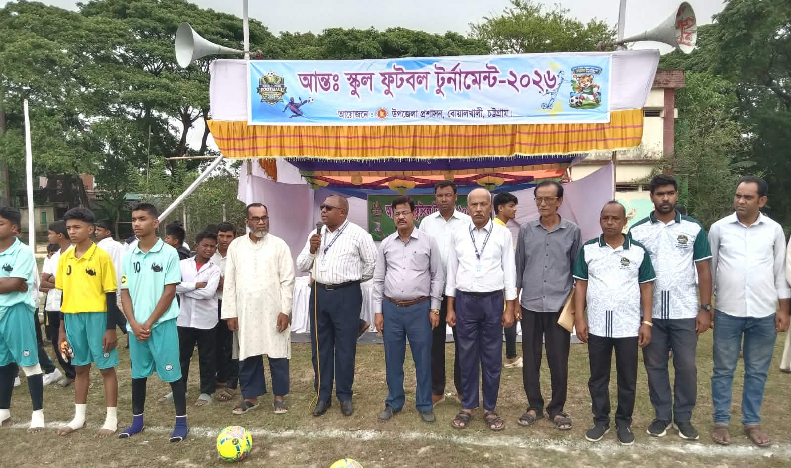 বোয়ালখালী পূর্ণ চন্দ্র সেন সারোয়াতলী স্কুল মাঠে আন্ত:স্কুল ফুটবল টুর্নামেন্ট শুভ উদ্বোধন-২০২৬
