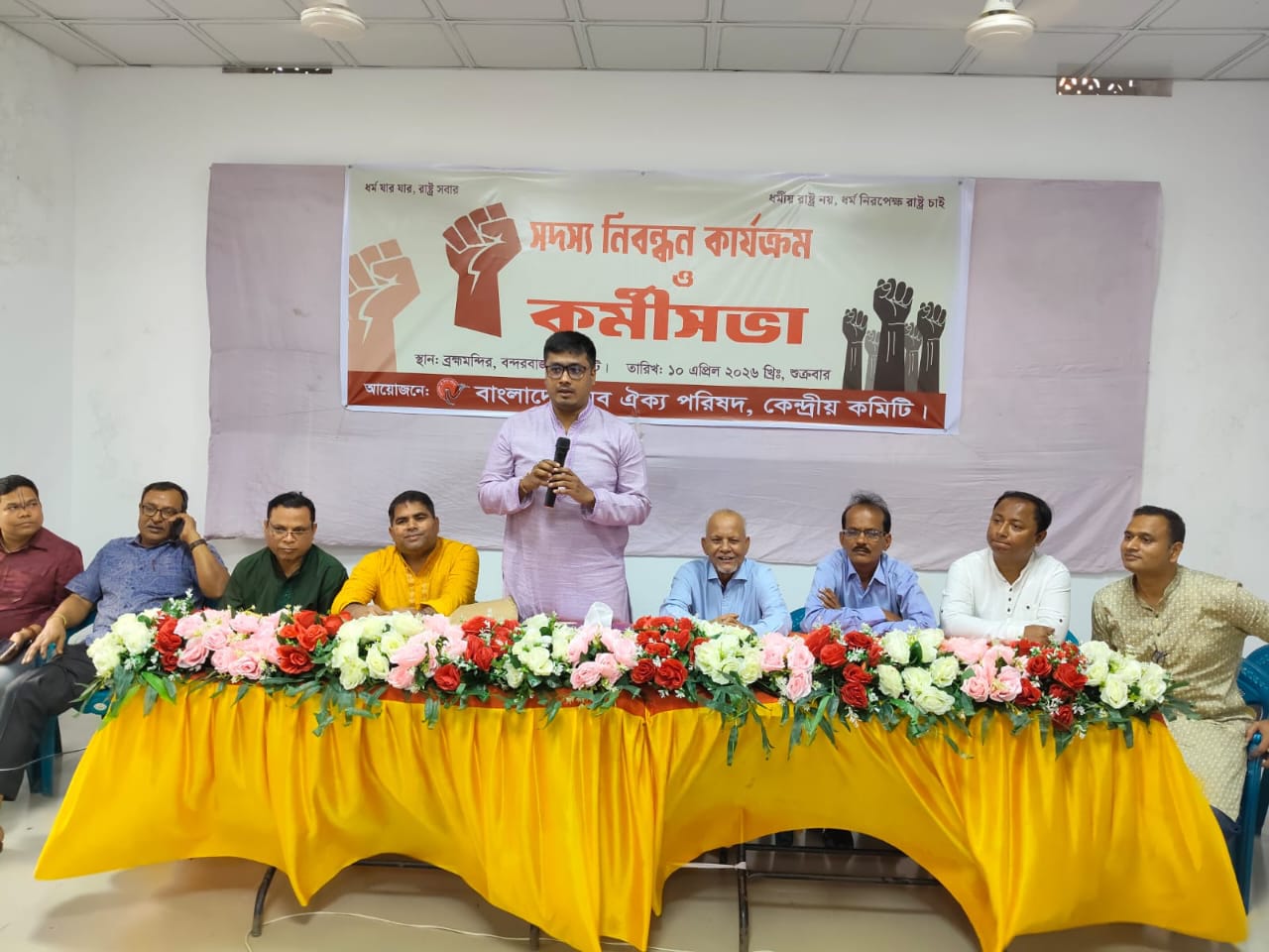 বাংলাদেশ হিন্দু বৌদ্ধ খ্রিস্টান ঐক্য পরিষদর সহযোগী সংগঠন বাংলাদেশ যুব ঐক্য পরিষদ সিলেট জেলা ও মহানগর শাখার সদস্য নিবন্ধন কার্যক্রম ও কর্মীসভা অনুষ্ঠিত হয়েছে।শুক্রবার নগরীর ব্রম্মময়ী মন্দিরে অনুষ্ঠিত সংগঠনের সিলেট জেলা ও মহানগর শাখার পৃথক সদস্য নিবন্ধন কার্যক্রম ও কর্মীসভায় বিদ্যুৎ কান্তি সেনকে সিলেট জেলার আহবায়ক ও রজত কান্তি চক্রবর্তী কে সদস্য সচিব এবং রকি দেব কে মহানগর শাখার আহবায়ক ও ঋষিকেশ দাস কে সদস্য সচিব করে এডহক কমিটি গঠন করা হয়।