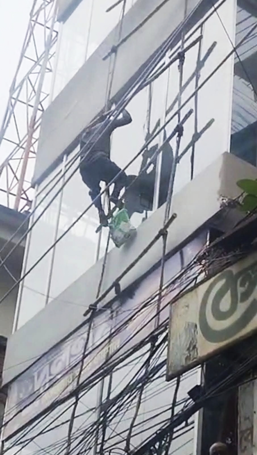 একপর্যায়ে তিনি বৈদ্যুতিক তার থেকে ছিটকে নিচে পিচঢালা সড়কে পড়ে যান।